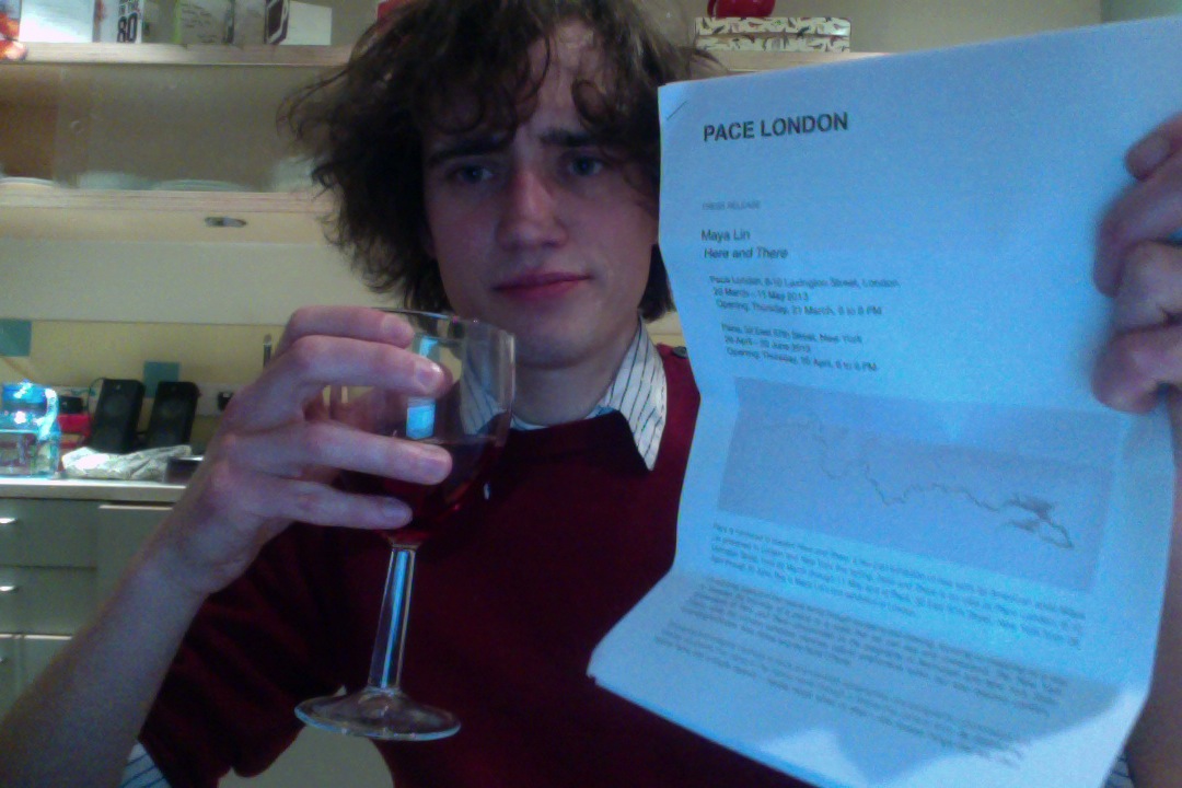 What I went to was Pace Gallery’s Here and There, an exhibition by renowned American artist Maya Lin. Didn’t have to show a ticket or anything, didn’t have to drop a name. Just wandered in off the street and got handed some free ruddy champers and some press materials. Jackpot!