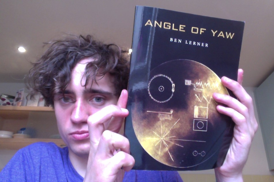 Ben Lerner’s recently published first novel, Leaving the Atocha Station, is a great read I’ve recommended to several people (Review here). Given how much I enjoyed it, and the fact that I “like poetry” now, I decided to check out one of Lerner’s earlier poetry collections. I chose the 2006 volume Angle of Yaw.