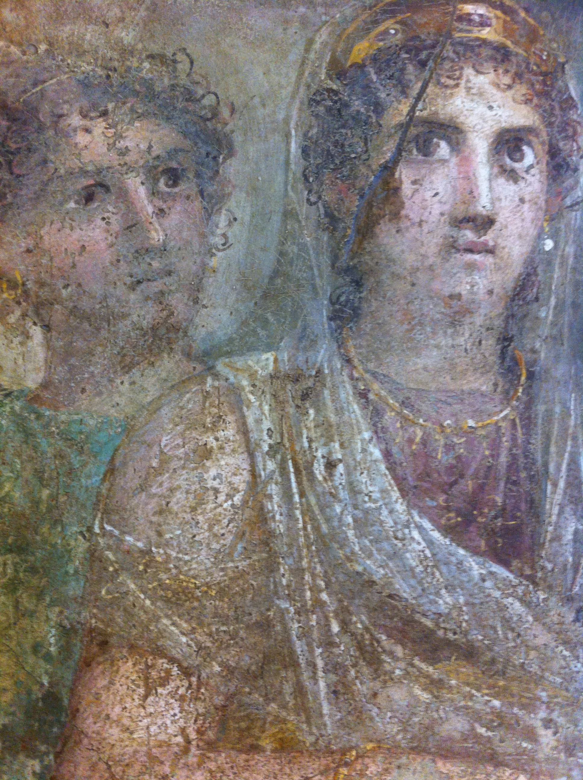 and impressive frescoes and mosaics, some of which are astounding. Particularly those in the special room of Ancient Erotic art. Despite that room existing, the following fresco was my favourite. I love its colour and its detail, the fade into the background of the figure to the left mirroring his position behind the women, emphasising his disappearance from the world.