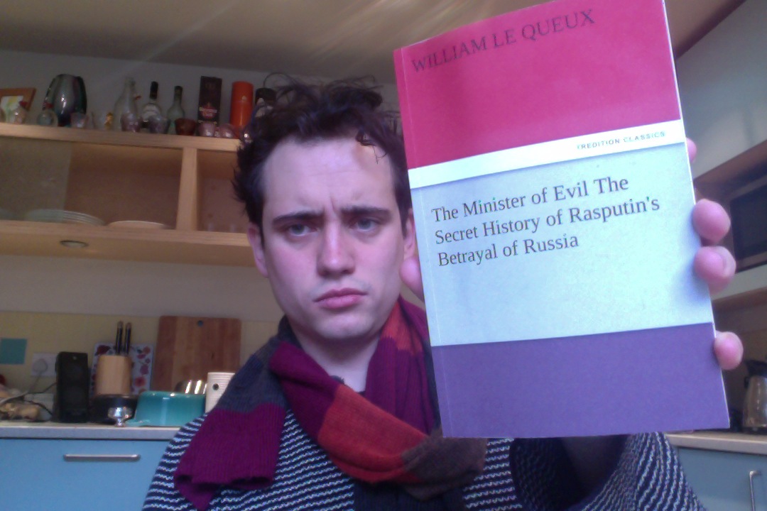The Minister of Evil: The Secret History of Rasputin’s Betrayal of Russia is a very strange book. I read it because I’m researching Rasputin with the intention of writing some kind of disco-inspired novel about the man over the course of 2015.* I’ve read lots of books about him and disco already, closeted away in the British Library, so by now I have a pretty good idea of the basic facts of the man’s life, but also of the various rumours that different factions spread about him. His followers believed him sent from God, able to heal sick and see the future, whilst his enemies publicised the fact that he was a hard-drinking womaniser (which was kind of true), but also that he was a corrupt, spying, avaricious, traitorous mastermind who tricked and coerced the Emperor into placing the governance of Russia into his hands. Some went even further and said that Rasputin wanted control of the world, which he saw as achievable by assisting Germany to win the First World War and then worm his way into power of a Europe-wide state. This is what William Le Queux’s The Minister of Evil is about.