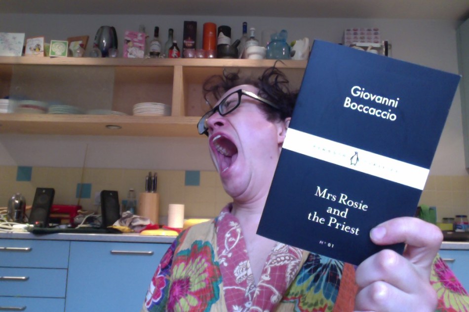 The slim volume contains 4 tales taken from Boccaccio’s Decamaron, written in Tuscany in the 14th century. One is about a man being robbed and himself a thief to regain his losses, one is about an old man being cuckolded by his much younger and very horny wife, the third is about a randy priest tricking a married woman into sex, but in such a cheeky way that their dalliance becomes long term, and the fourth is about a wealthy man marrying a poor woman and treating her appallingly in order to ascertain that she is a good and dependable wife.*