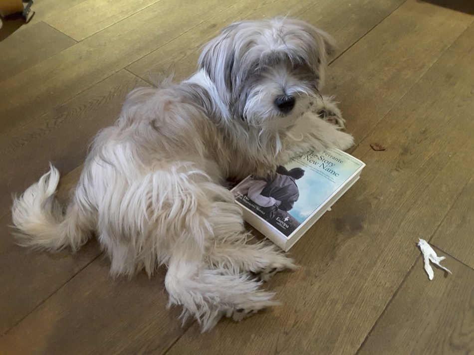 I have sat today and read about 250 pages of The Story of a New Name, in part because I’ve been distracted by so many things recently I haven’t finished a book for two and a half weeks, but also because when I picked the book up this morning with a few (rare, atm) hours to myself, I fell through its pages and into a different world. I read the first half of the book in snatched moments as I ran around the city doing chores (in preparation for the beginning of a new act in my life**) and I spent far too much of that time flicking back to the list of characters at the front, trying to relearn all the complex familial and romantic relationships Ferrante’s series of novels contains. Today, though, a great day of semi-intense reading, has been a joy: a couple of multi-hour book-banging sessions, sat in a reasonably comfortable chair with access to a functioning Nespresso machine and my dog. It’s the kind of happiness I never dreamed could exist. As long as I avoid mirrors, there are ways to fake contentment.