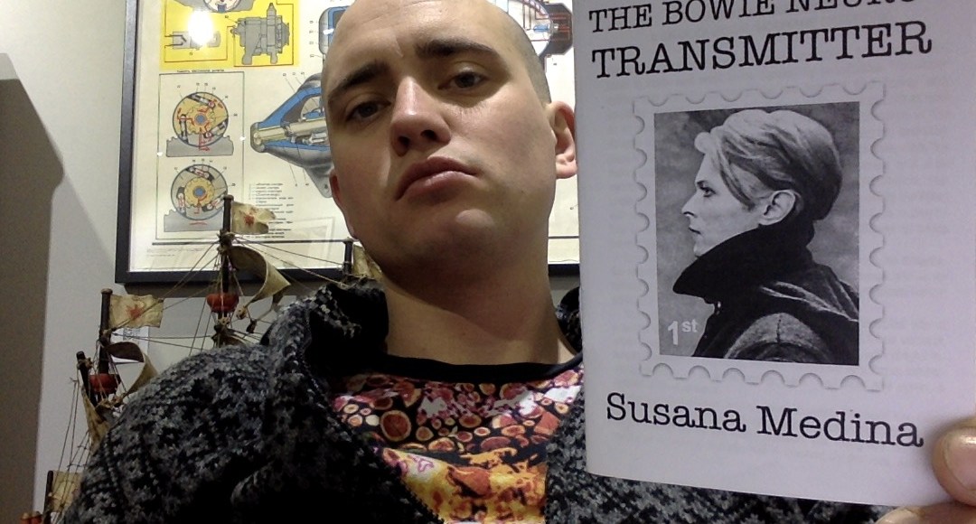 Piece of Paper Press is run by Tony White and is a “lo-fi” independent publisher that puts out limited copies of arty books once or twice a year. The books are made of a single piece of paper, cut up stapled together by hand. Often these are conceptual works created by artists, but Medina is a writer and her book – I will call it that – is called The Bowie Neurotransmitter and is a meditation on the importance of David Bowie to her life. To everyone’s life, I suppose.