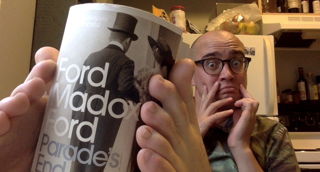 This is a big book, a big modernist quartet of four texts that were once considered separate novels (Some Do Not…, No More Parades, A Man Could Stand Up–, and The Last Post) and are now [mostly] published together as one text: Parade’s End by Ford Madox Ford.
