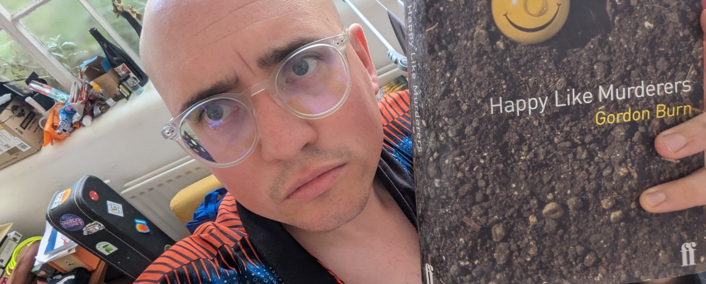 Knowing I would have a terrible time in middle England due to the place and the circumstances, I picked up a book from my shelf to take with me that would perfectly match the vibes from that week: Happy Like Murderers by Gordon Burn.
