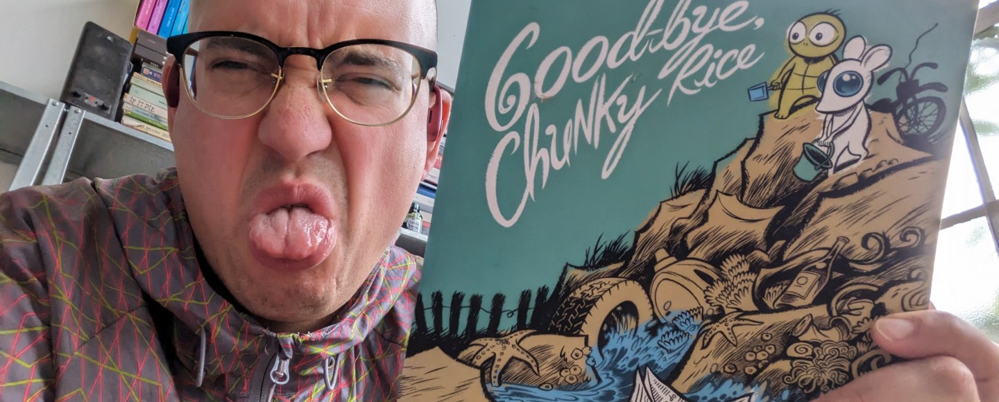 In spite of glowing blurbs from industry luminaries, Goodbye, Chunky Rice I found to be an uninteresting and ultimately vapid piece of writing supposedly about friendship and loss and grieving those who are still alive, but – for me – the characters felt about as rounded as a square (the least round shape), as complex as a triangle (the least complex shape) and as deep as the slick of oil I will use to shallow fry the onions for my pasta sauce base later on today…