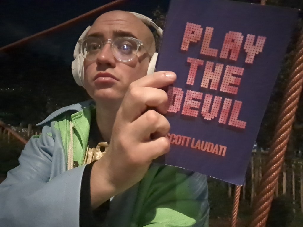 What I will do, though, especially as I’m now back off the tube (after changing at Euston onto the Victoria line which I’ve lived close to basically all my time ever in London lol whoops lol) is to remember to forget about my weird reaction to realising that Scott Laudati and I share a first name, and put my phone away for 12 hours and come back to comment on the novel after I’ve had a sleep.