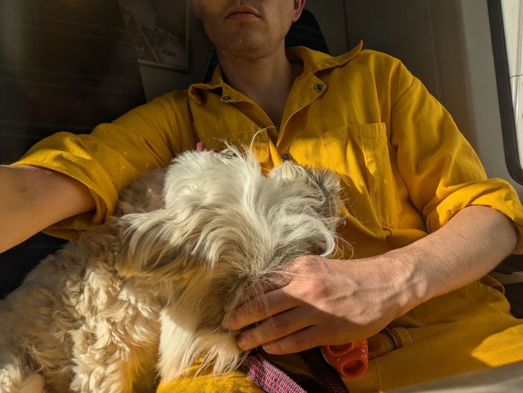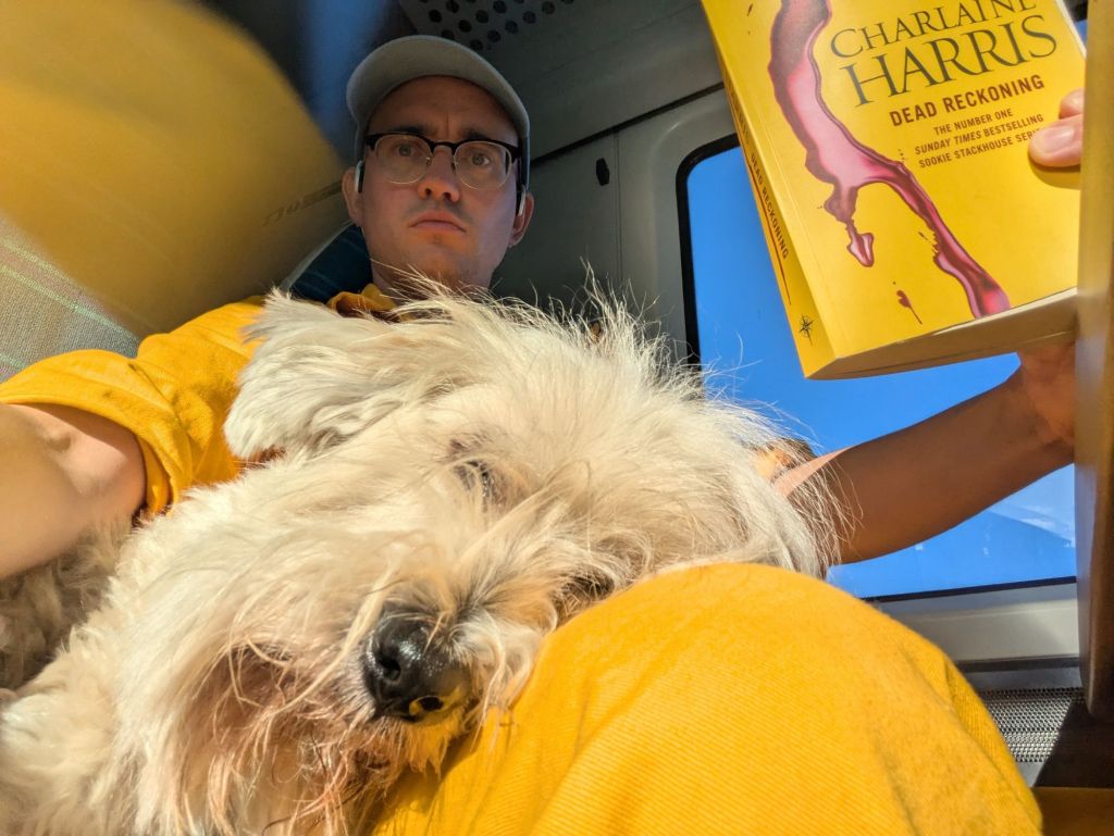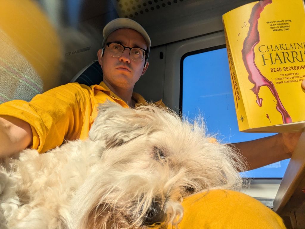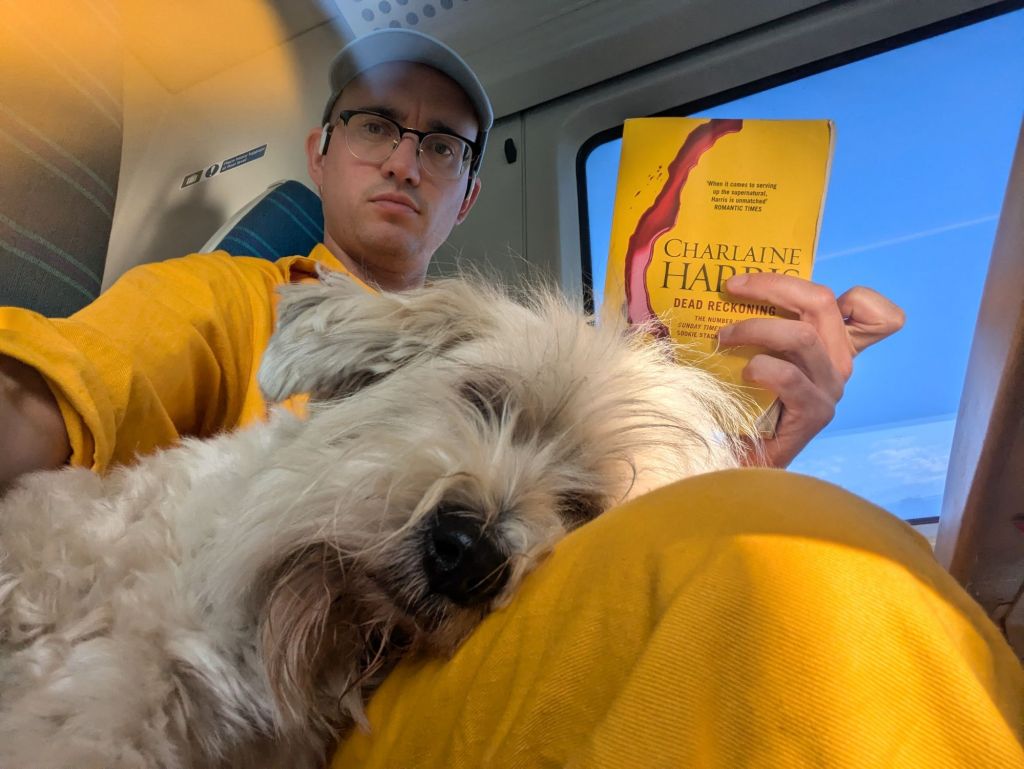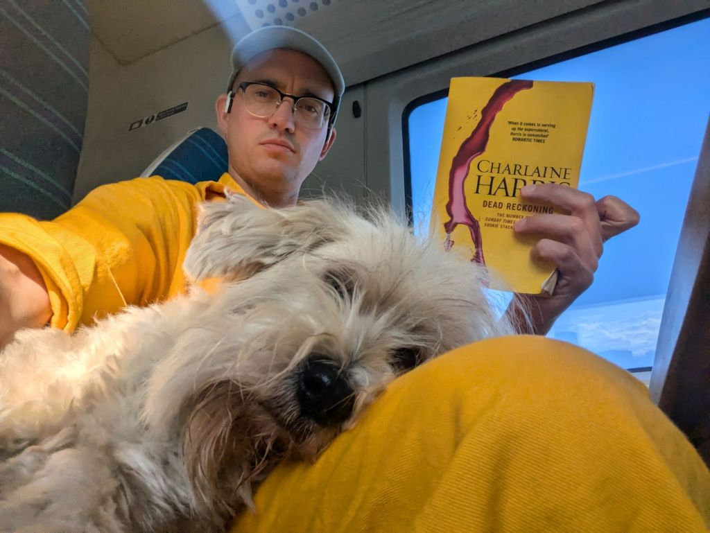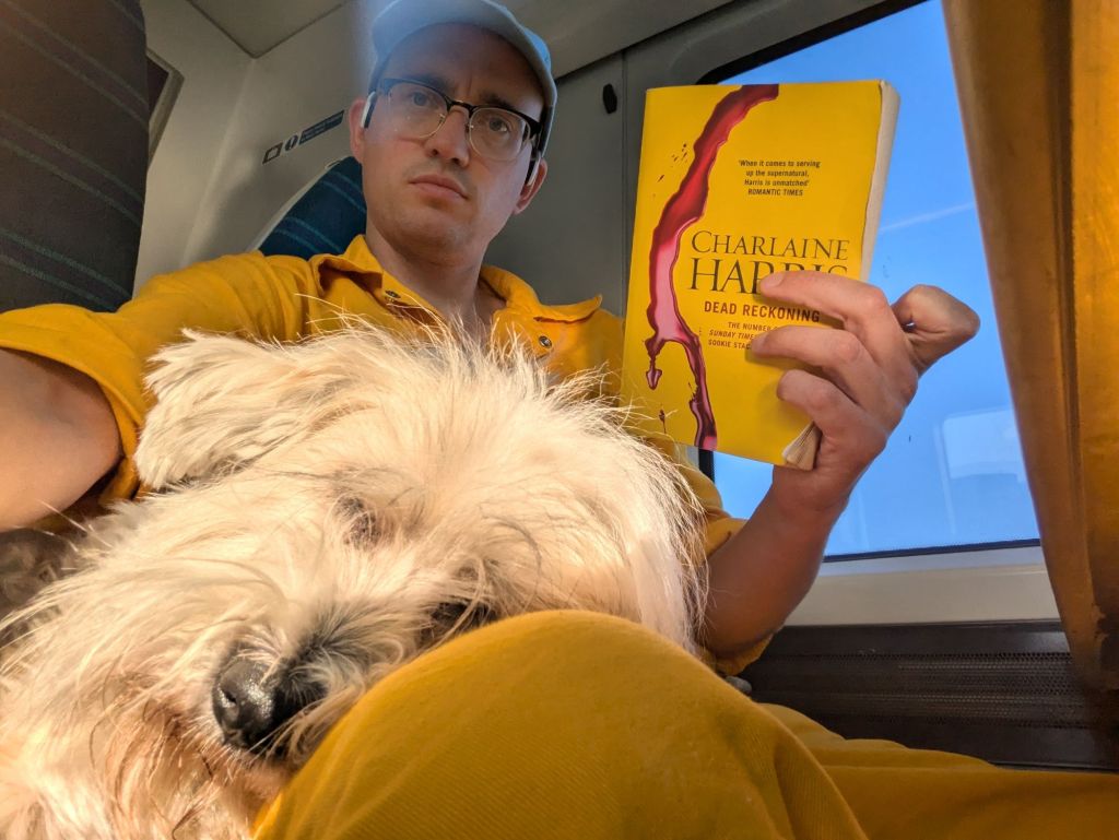 Me and my fluffiest cutefriend reading Sookie on a train: