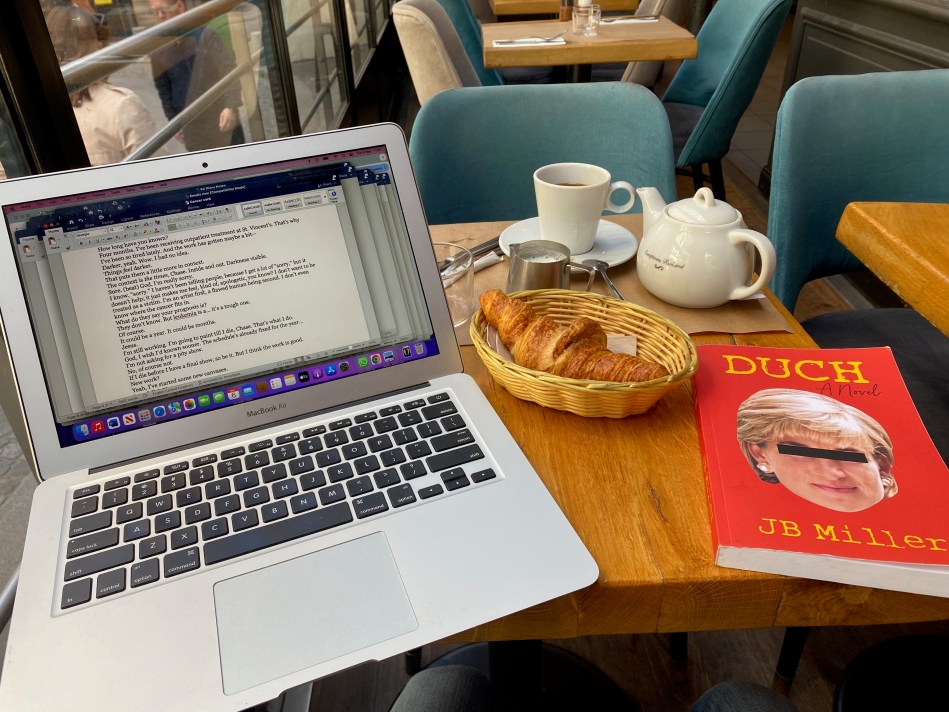A: At Gail’s, a chain of cafes in London. Also, various cafes in Paris, where much of Duch was set.